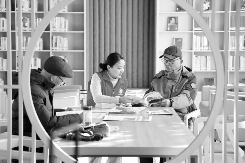 1月8日,安徽省六安市图书馆“‘阅享银年’书送温暖 福进千门”主题活动走进六安市直老干部活动中心阅享空间,志愿者为老年读者赠报送书、一起交流读书心得,开展全民阅读服务推广活动。