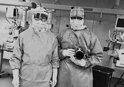 在武汉大学人民医院东院区新冠肺炎危重症CCU病区,王富晓(右)跟随李兰娟院士查房后合影。河南日报报业集团 供图