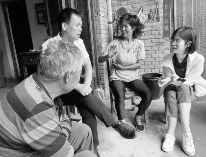 在孟津县小浪底镇上梭椤沟村,《河南日报》评论员刘婵(右一)在村民家采访。