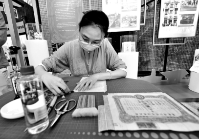 10月10日,“百年传承 上海匠心――上海市档案馆藏老字号历史文献选萃”展览亮相第十四届中华老字号博览会。展览着重呈现15家具有代表性、持续营业至今的上海老字号工商企业经营发展历程,通过60余件上海市档案馆馆藏珍贵历史文献、照片等,展示上海老字号丰厚的历史底蕴和品牌价值。图为档案修复师现场演示修复老资料技艺。