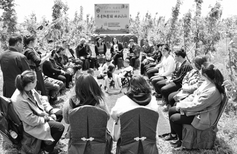 “徐湾书香飘梨园”活动已连办3届,邀请周边群众走进梨园,分享书中乐趣,为梨园引来了一批粉丝。章丽娟 摄