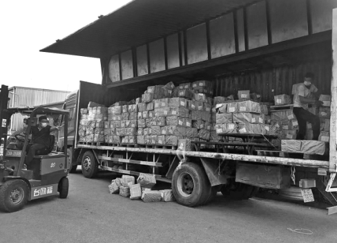 虽然已经进入秋季,但华北的气温依然居高不下。为确保“课前到书”,一个个新华书店的教材人在岗位上挥汗如雨、马不停蹄地忙碌着。在一个差不多标准足球场大小的仓库外,一辆满载的货车正在往里面卸货,与此同时,仓库另一侧,师傅们正在往车上装货。“收货、发货同时进行,是近一段时间以来的常态。为了让仓库随时都有足够的周转空间,我们必须保证2到3个小时之内将收到的教材分发给各区店。”天津市教材发行公司车队主任曹卫东表示,最近每天都有大批教材集中到达,从早上7点到晚上9点,最少也有20辆车送货。