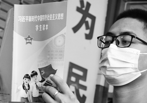 图为山西新绛县新华书店员工在分发、检查《习近平新时代中国特色社会主义思想学生读本》。