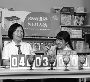 知识大赛由“来到对角巷”“登上特快列车”“进入霍格沃茨”“分院帽的挑战”4个环节构成,问题均来自“哈利・波特”系列图书内容,有填空问答、图片题、推理题等。经过4个环节的比赛,最终角逐出获得荣誉的学院与获胜个人,这些读者分别获得了人文社提供的20周年纪念版套装、英汉对照版《死亡圣器》、非卖品的“哈利・波特”帆布袋等奖品。