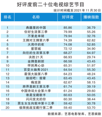 这一年,多档文化类综艺节目让传统文化“破壁”,让非遗艺术成了舞台的主角,古典意蕴与新潮表达紧密融合。河南卫视“中国节日”系列节目,在每一个隽永的传统节日都掀起一场文化大狂欢;《中国诗词大会》依然拥有极强的市场号召力;《典籍里的中国》融合“电视+电影+戏剧”的形式,让典籍在电视屏幕上“活”了起来;《万里走单骑》为每一处世遗地定制一场“文化后援企划”,挖掘和呈现世界遗产的丰富文化内涵;还有《舞千年》等主打舞蹈的综艺,引发观众对优美中国舞的关注和追捧……观众在2021年愈发感受到,古典艺术不再是史册和壁画里静止的记忆,也不是流行文化的“背景色”,而是舞台上独当一面的大主角。