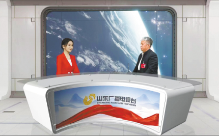 全国两会期间,山东广播电视台首位超写实数字主持人“海蓝”首次亮相全国两会元宇宙演播室,围绕文化“两创”话题,对话全国人大代表、山东大学儒学高等研究院特聘教授杨朝明。山东广播电视台 供图