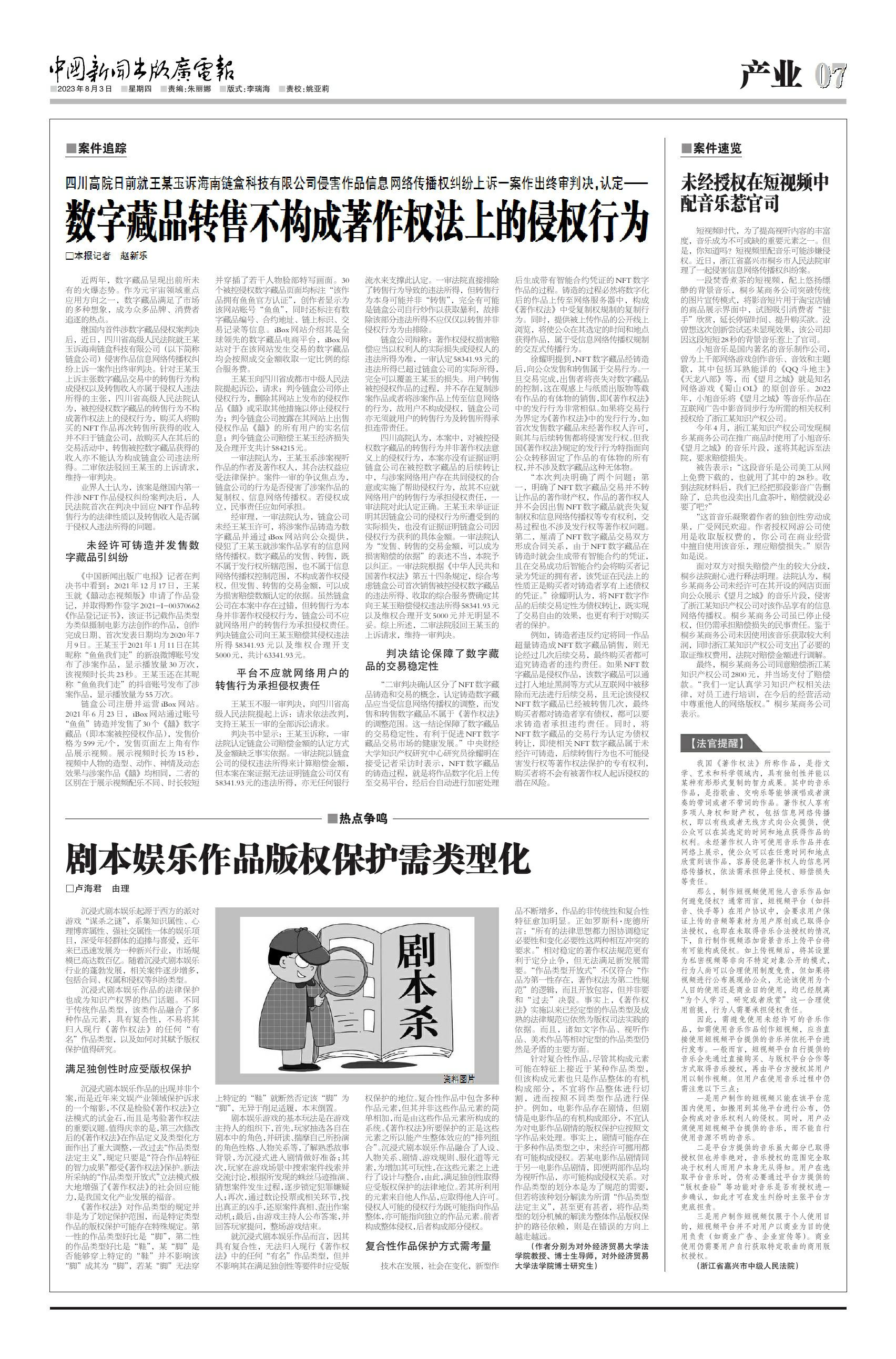 “二审判决确认区分了NFT数字藏品铸造和交易的概念,认定铸造数字藏品应当受信息网络传播权的调整,而发售和转售数字藏品不属于《著作权法》的调整范围。这一结论保障了数字藏品的交易稳定性,有利于促进NFT数字藏品交易市场的健康发展。”中央财经大学知识产权研究中心研究员徐耀明在接受记者采访时表示,NFT数字藏品的铸造过程,就是将作品数字化后上传至交易平台,经后台自动进行加密处理后生成带有智能合约凭证的NFT数字作品的过程。铸造的过程必然将数字化后的作品上传至网络服务器中,构成《著作权法》中受复制权规制的复制行为。同时,提供被上传作品的公开线上浏览,将使公众在其选定的时间和地点获得作品,属于受信息网络传播权规制的交互式传播行为。
