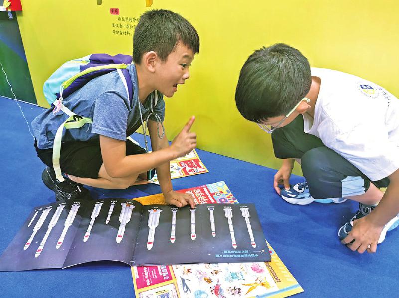 在第33届全国书博会上,第5届少儿阅读嘉年华展区以“科技海洋 童阅领航”为主题,汇聚众多科普童书,吸引了大批小读者,其中还有一些资深科普图书爱好者。7月25日下午3点,《中国新闻出版广电报》记者走进展区时,很多小读者沉浸在科普图书海洋,其中8岁的姚星辰和同学程俊凯一起拿着《“胖五”火箭再出征》,用书中的拉页插图猜测长征五号系列运载火箭型号。姚星辰说,他们俩已经共同阅读这本书20多分钟了,两人对航空航天以及科技类图书非常感兴趣。采访中,两位小读者说,他们是科普书迷,家长在手机上看到书博会在家门口举办,又有专门的少儿阅读嘉年华活动,就带他们来逛展。让他们没想到的是,这里居然有很多航天航空类科普书,太让人开心了。当天,他们几乎泡在这个展区,阅读了好几本书,姚星辰还自豪地说有几本书他6岁时就看过,他还和其他小朋友就书中内容进行了分享。少儿阅读嘉年华展区由中国出版协会指导,北京书友之家文化交流有限公司主办,中国出版协会少年儿童读物工作委员会协办。该展区有中国少年儿童新闻出版总社、北京科学技术出版社、浙江少年儿童出版社、接力出版社、童趣出版有限公司、蒲公英童书等20余家出版机构及童书品牌带来的《追星星的五千年·冲破天穹》《真相只有一个(全9册)》《国之脊梁:中国院士的科学人生百年》《银河学院:地球战舰之谜》《从无穷小到无穷大(全2册)》《科学真有趣·改变世界的中国传统大发明》《拯救地球的未来发明》《万桥飞虹》和“少年航天局”系列(8册)等众多优秀童书。