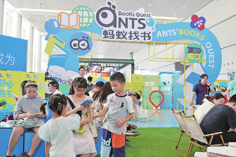 “‘蚂蚁找书’为此次书博会推出的官方文创,与‘蚂蚁精神’相融合,受到了大家的追捧。”展区工作人员胡丽凝告诉记者,读者对于线上线下串联的活动以及共创内容特别感兴趣。“比如出版行业的发展进程、编辑是如何做书的……这些内容都是他们关心的话题,所以展区推出的特色活动‘做一本不被定义’的书,鼓励读者现场参与制作一本简易图书,读者既能感受到出版行业创作一本书的乐趣,还能按书中线索完成打卡任务,实现从‘内容创作者’到‘文化探索者’的身份转变。”