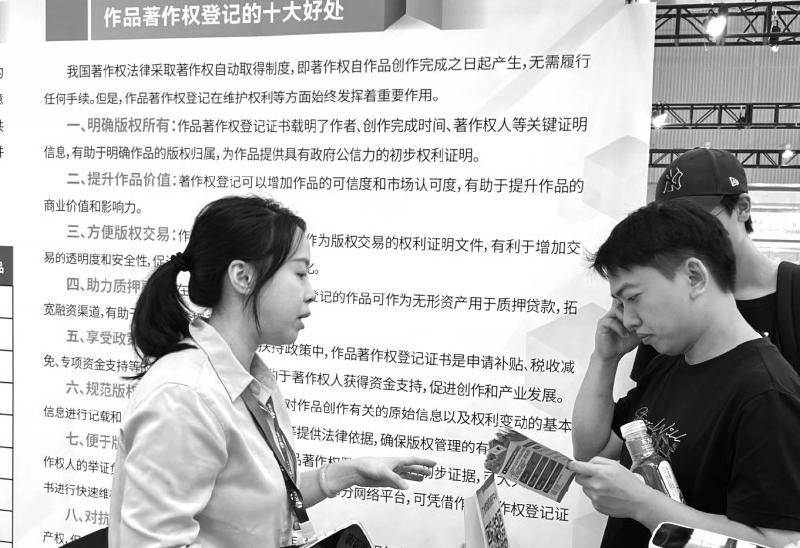 广州市版权保护中心工作人员向展商介绍版权业务。 广州市版权保护中心 供图