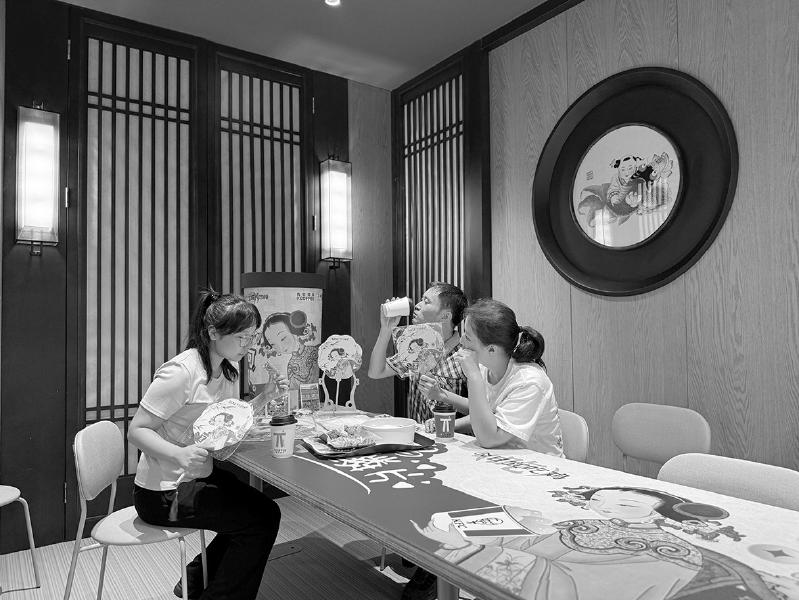 图为食客在肯德基杨柳青木版年画主题餐厅用餐。 天津杨柳青画社 供图
