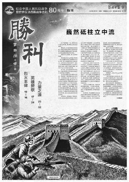 纪念中国人民抗日战争暨世界反法西斯战争胜利80周年,是今年新闻报道中的重大主题。为了做好相关报道工作,河北日报社党委高度重视,由总编辑亲自挂帅,协调精干力量组成谋划组,于今年初开始进行精心策划,特别是对9月3日纪念中国人民抗日战争暨世界反法西斯战争胜利80周年大会举行这天如何将报道推向高潮、做出气势进行了充分讨论。最终,我们确定推出以“胜利”为主题的24个版特刊,全景式展现河北在抗日战争中所发挥的“坚强堡垒”作用。