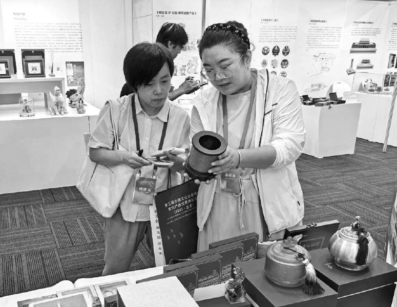 第三届全国文化出版领域文创产品交易博览会上,参观者打卡“哈军工”红色IP系列文创产品。 哈尔滨工程大学出版社 供图