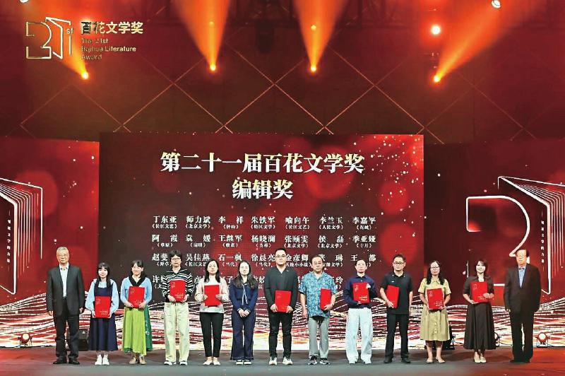 9月20日,第二十一届百花文学奖颁奖典礼在中新天津生态城举行,共有45篇作品分获8类文学奖项,27位文学期刊编辑获得编辑奖,30位读者获得读者奖。百花文学奖的前身为百花文艺出版社品牌期刊《小说月报》创设的“百花奖”,自1984年起每两年举办一届,以遴选当代文学佳作为使命,通过构建“读者投票与专家评审相结合”的双轨评选机制,打造多元主体共同参与的文学评价场域。40余年来,百花文学奖始终与中国社会变迁同频共振,与人民群众情感同构共鸣。第二十一届百花文学奖顺应新大众文艺蓬勃发展的时代语境,增设“微型小说奖”,从而构建起集长、中、短篇及微型小说,以及散文、科幻文学、网络文学与影视改编于一体的综合性文学评价体系。