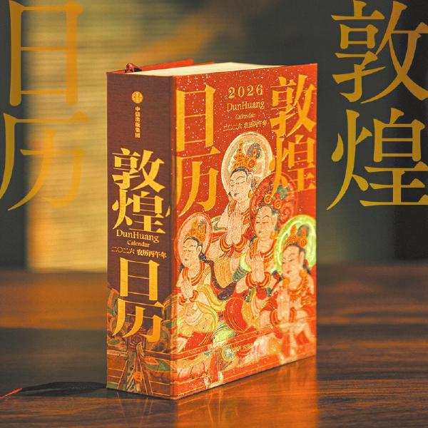 《敦煌日历2026》(中信出版集团)的主题是“马驰春风,福运绵长”,让敦煌独特的翼马壁画伴着新年的梦想腾飞。特制的敦煌经典垂幔纹刷边,寓意“吉祥连绵,福瑞披覆”。此外,日历中新增节假日彩蛋,在重要节日印有专属敦煌主题吉章。《敦煌日历2026》由敦煌研究院的编写团队打造,他们逐窟勘察、反复比对,只为选取全新视角和独一无二的画面,特别收录罕见洞窟中平日难得一见的珍品、百余张珍贵图像,首次引入麦积山、炳灵寺、北石窟寺中的30幅丝路艺术精华。中信出版集团生活美学事业部副总经理、《敦煌日历》系列总策划卢自强介绍,除经典版日历外,今年还特别推出限量邮票藏书票版和立式日历书两个新版本。邮票藏书票版含1990年庚午马年中国邮政发行的敦煌壁画主题邮票4枚和编号藏书票1张。