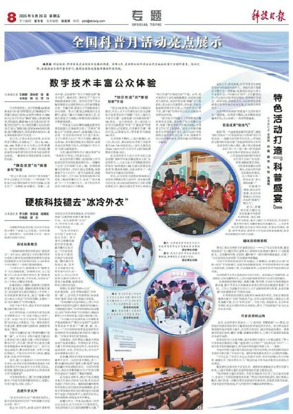 《科技日报》推出全国科普月专版,展现全国各地蓬勃开展的科普实践。除了全面展示全国各地科普活动的实践,《科技日报》推出的《硬核科技褪去“冰冷外衣”》报道,更是从硬核科技如何进行生动呈现的角度,从各地具体案例中总结出可借鉴的经验,为更多机构进行更好科普提供了具体做法。