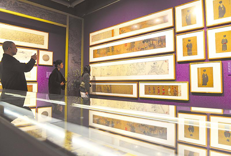图为11月26日,展览展出的历代绘画精品图像调色打样稿吸引市民观赏。
