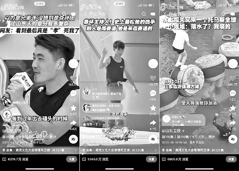从近万名线上报名选手中遴选出5000名“黄河儿女”参与录制,节目突破多元圈层,为各行各业、各年龄层次的人提供了展示自我的舞台。他们中既有武术“练家子”,也有全职宝妈;既有躬身勤耕的新时代农民,也有网络达人等新就业群体……在节目的赛道上,我们看到这些平凡的劳动者乐观、昂扬的生活态度。他们笑对成功,亦笑对落水,这正是大众在平凡生活中自信表达的真实写照。以《黄河文化大会·琅琊风云榜》为主题,节目参赛选手的表现衍生出百万赞爆款短视频5条、千万级播放视频40余条、百万级播放视频200余条。参赛者们用自己的表现证明着综艺领域的金标准——以人民为中心的创作思路,才是最有价值的传播策略。