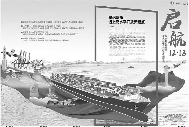作为海南省级党报,《海南日报》推出《启航12·18 海南自由贸易港正式启动全岛封关珍藏特刊》,以全景视角记录海南全面深化改革和建设中国特色自由贸易港的丰硕成果,并展望海南自贸港正式启动全岛封关的未来图景。