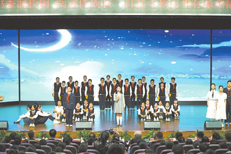 ②2025年4月25日,山西太原市万柏林区育华小学的学生们进行《慈江雨》情景剧表演以及《萤火谣》片段朗诵。该活动为“书香润校园阅读伴成长”百社千校万里行系列活动之一。